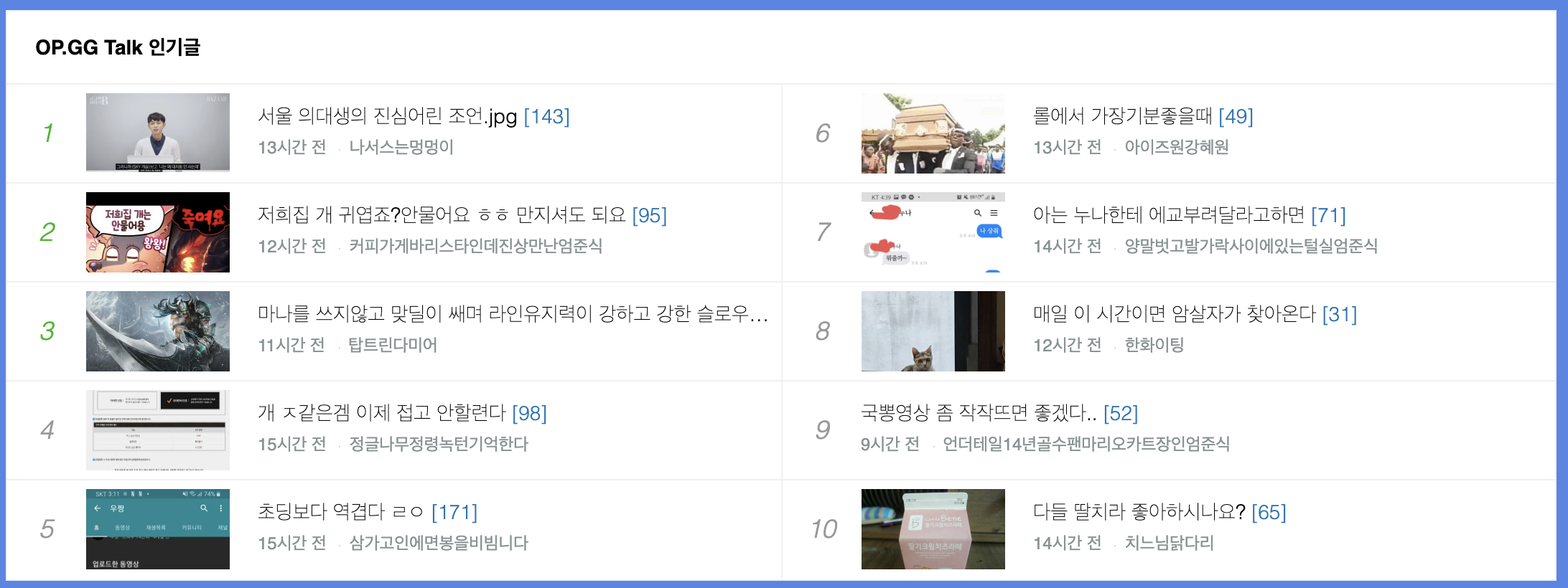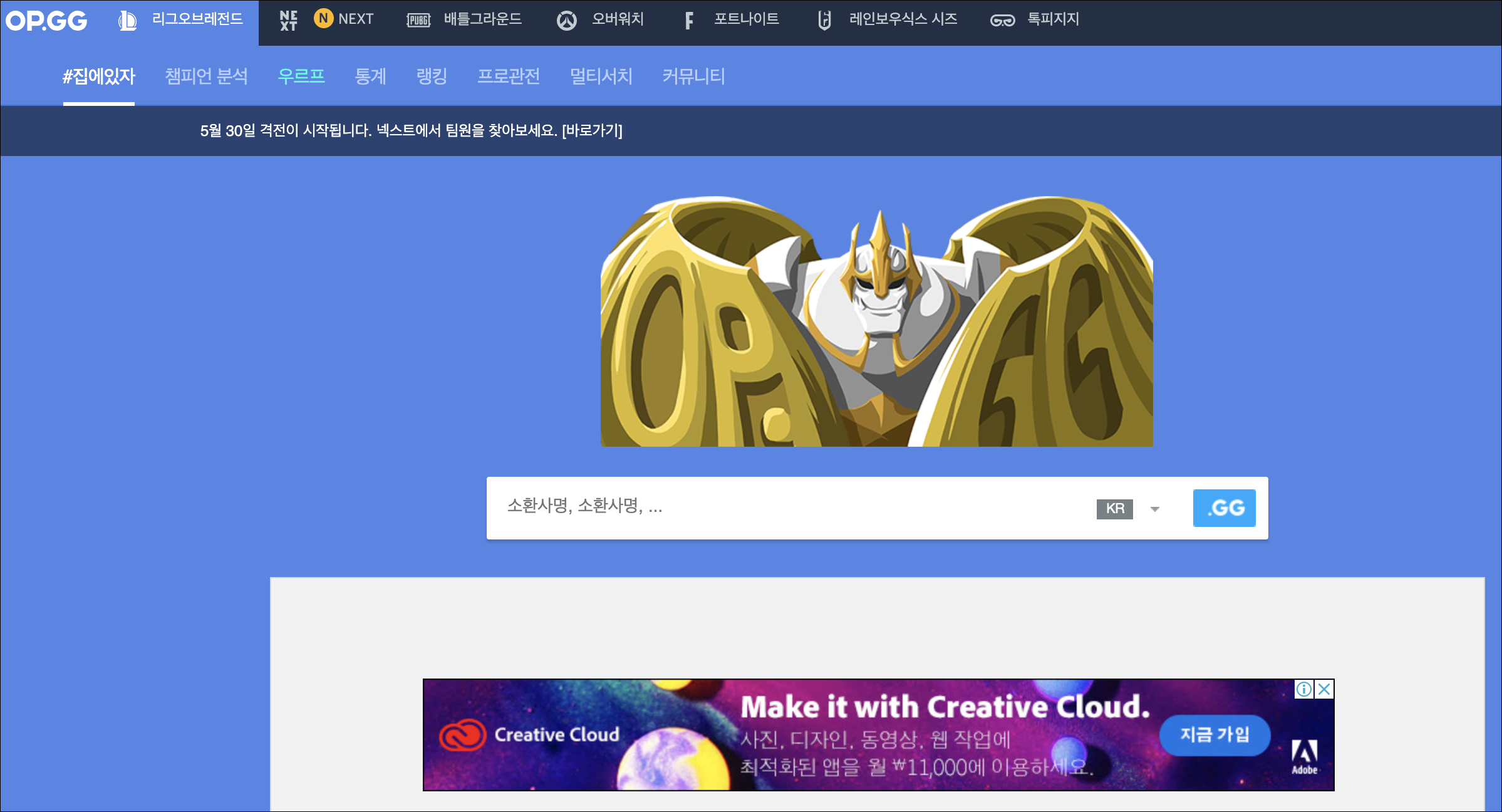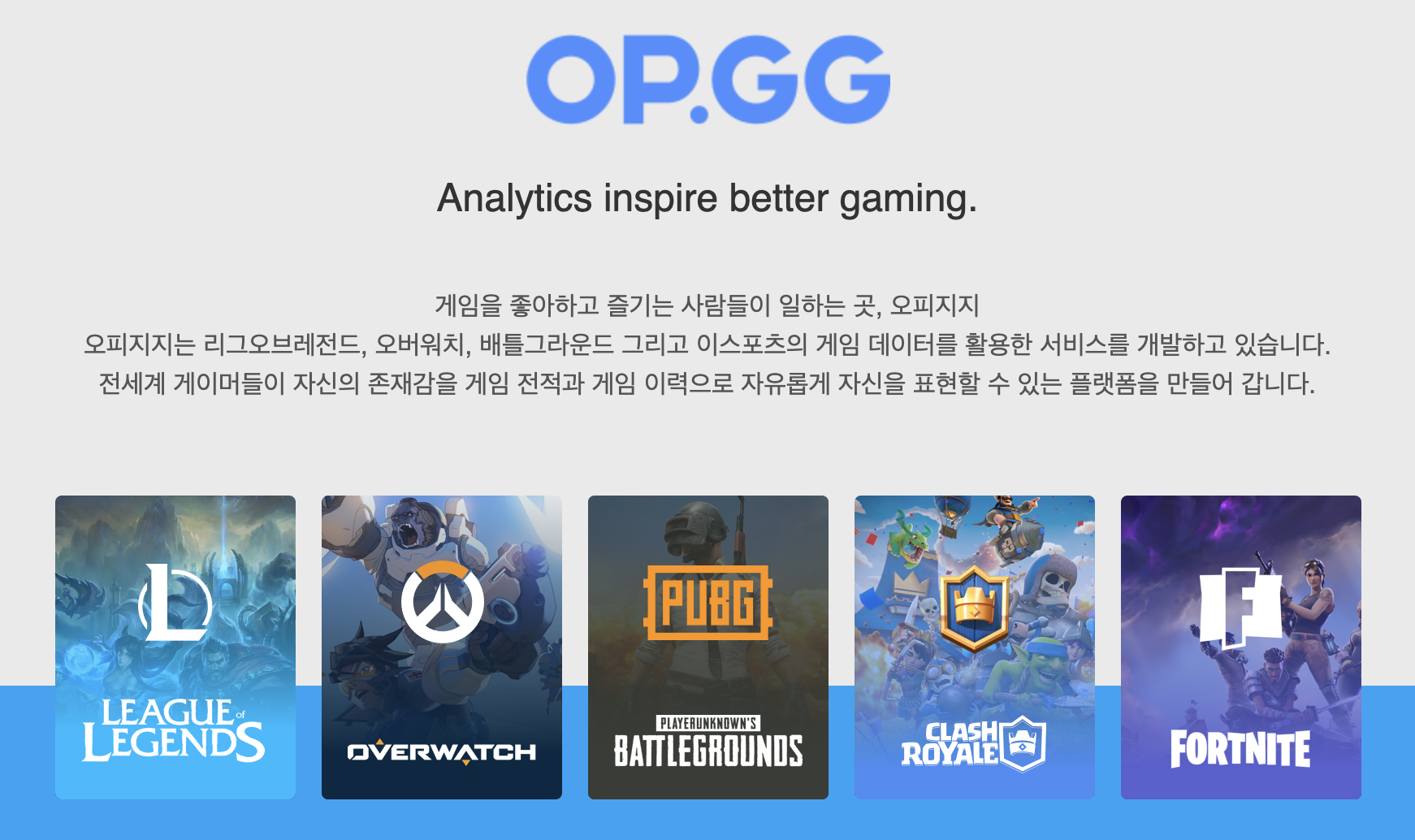 오피지지 라고 부르는구나. 롤게임만 제공하는 줄 알았는데, 오버워치 (이 게임도 아들이 열심히 하는 중) 배틀그라운드 등도 서비스 한다고 한다.