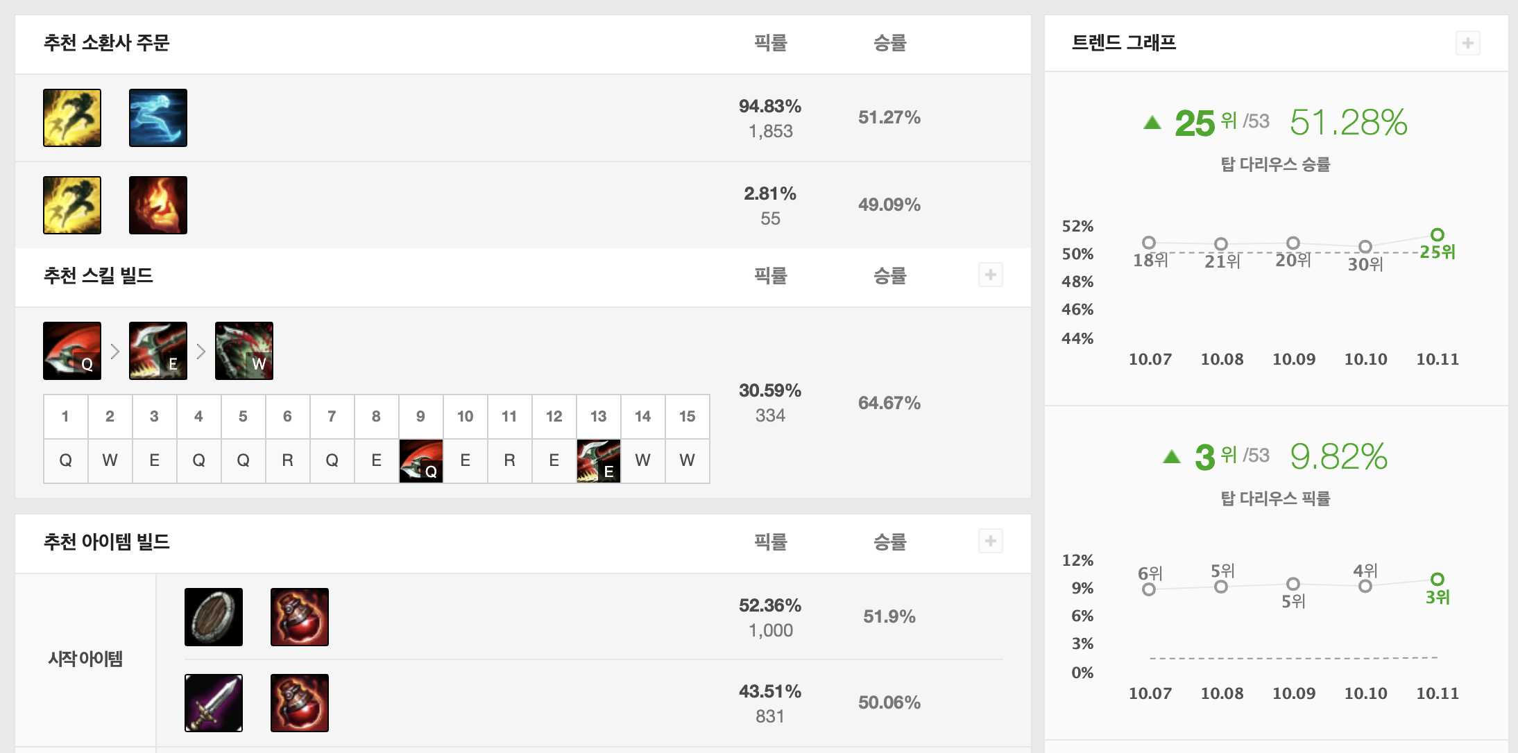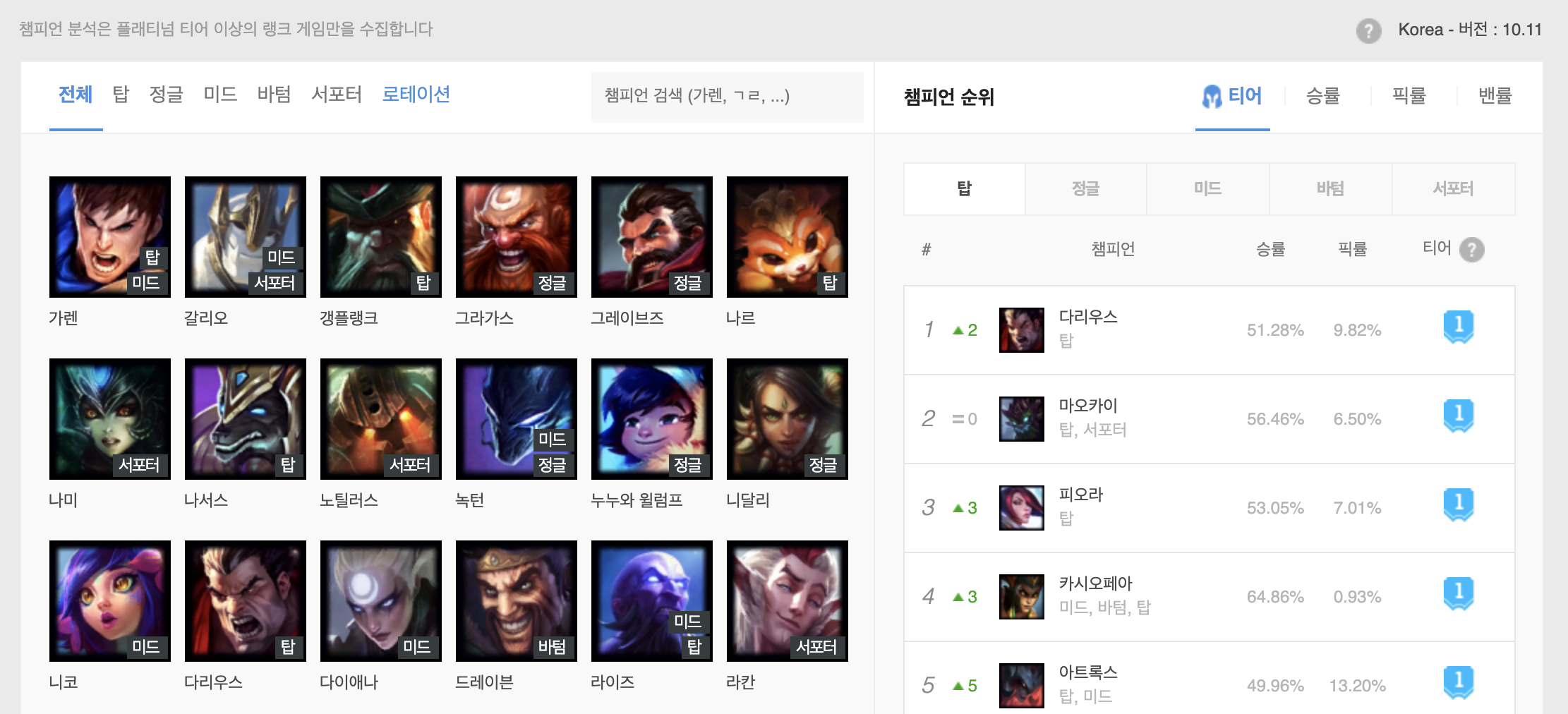 챔피언 분석 서비스를 종종 둘러보는데 아직은 모르는거 투성이다.