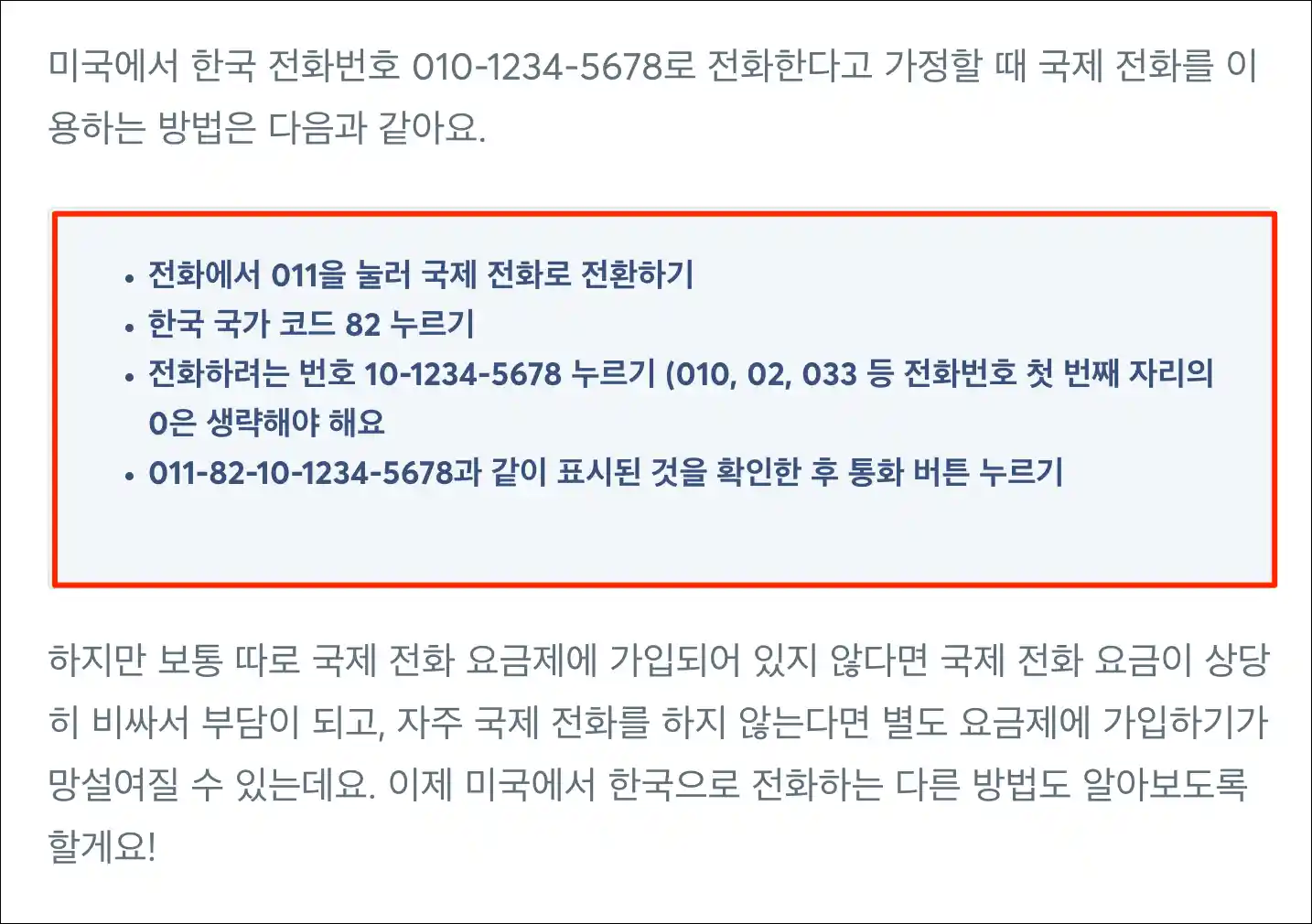 미국에서 한국으로 전화하는 방법