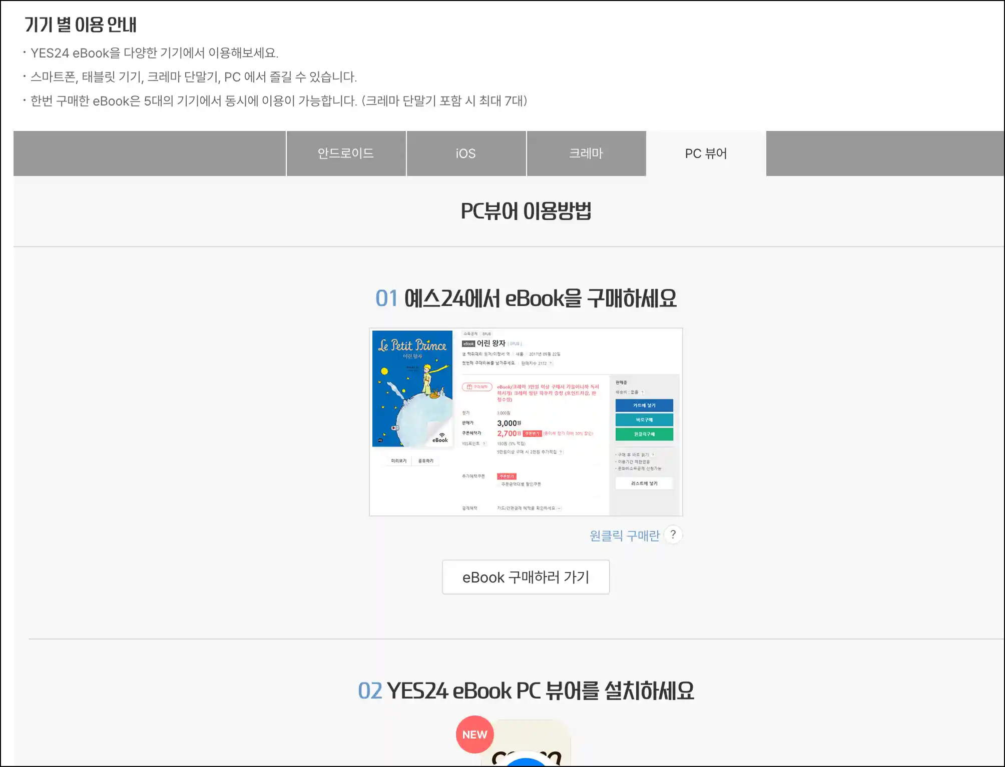 PC에서 YES24 eBook 이용 방법: